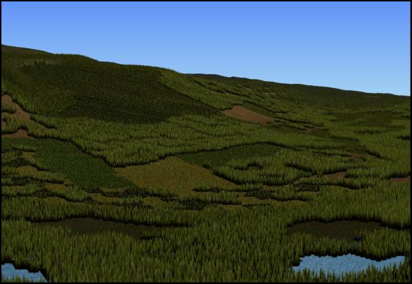 The following forestry renderings portray various levels of development from Viewpoint 2, including: